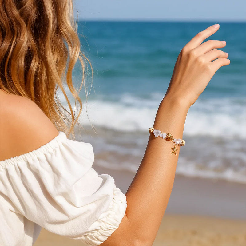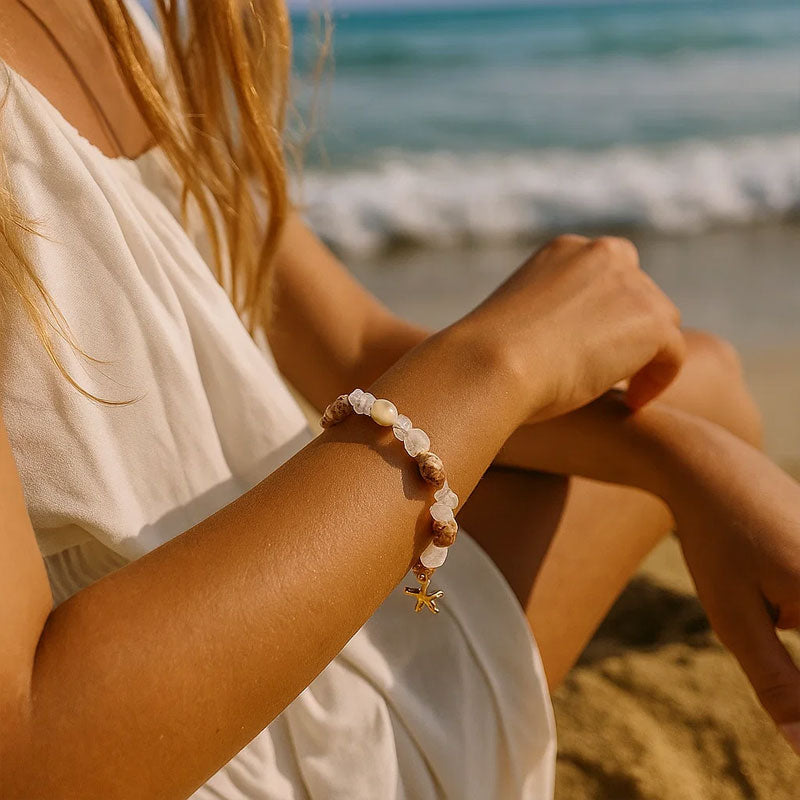 - Ocean-inspired: MeritĂ€hti-koristeet luonnonkivillĂ€ ja simpukoilla, aivan kuin sinulla olisi ranteessasi merituuli ja aallot đ.