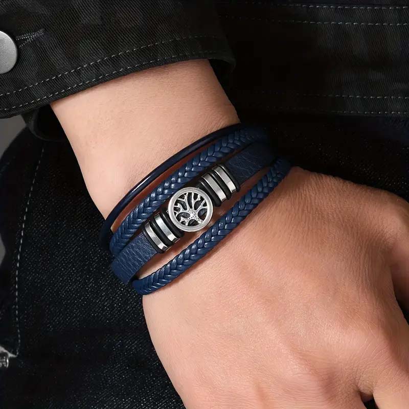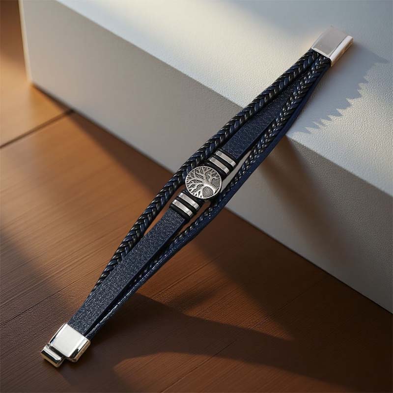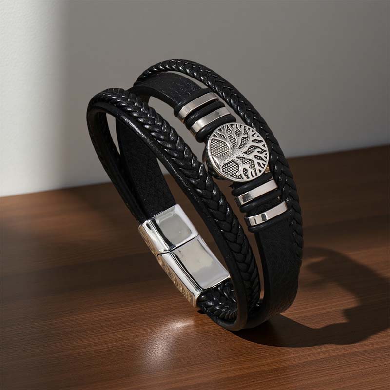 Haluatko antaa miehelle asusteen, joka yhdistÀÀ merkityksellisen muotoilun, kestÀvyyden ja trendikkÀÀn tyylin? TÀmÀ Tree of Life -nahkaranneke on tÀydellinen! Ainutlaatuisen Tree of Life -aiheen, muotoiltujen titaaniterÀskomponenttien ja monikerroksisen nahkalangan ansiosta se on sekoitus punk-asennetta, muotia ja persoonallisuutta - ihanteellinen sekÀ arkikÀyttöön ettÀ juhlalahjaksi.