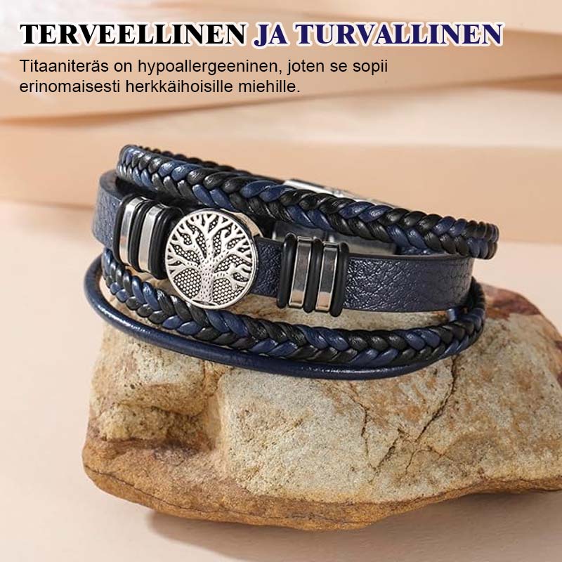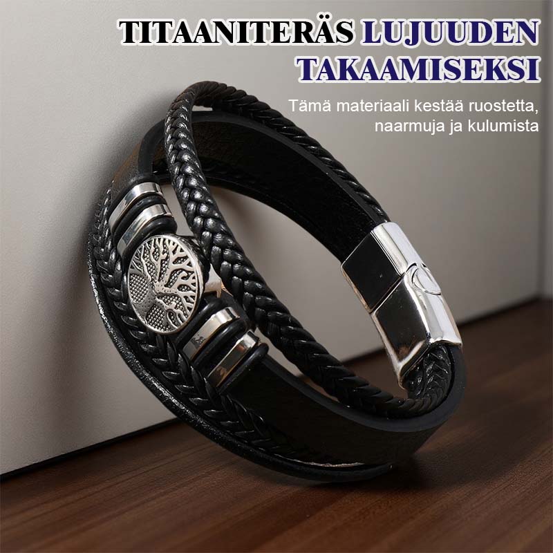 - Persoonallinen asuste: Yksinkertaisten rannekorujen maailmassa tÀmÀ rannekoru erottuu ainutlaatuisella ElÀmÀnpuun, titaaniterÀksen ja nahan yhdistelmÀllÀÀn. Se on tapa esitellÀ yksilöllistÀ tyyliÀsi menemÀttÀ kuitenkaan liioittelun puolelle.