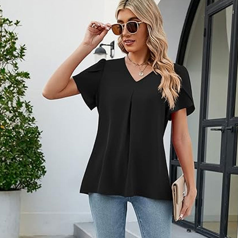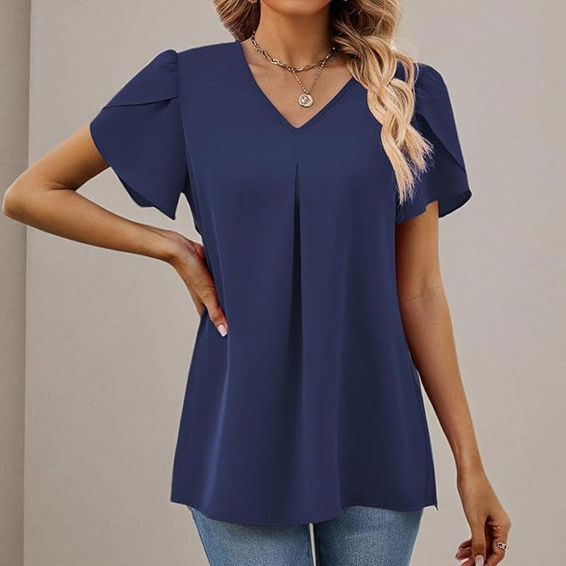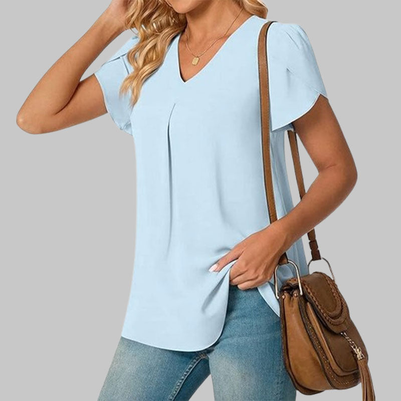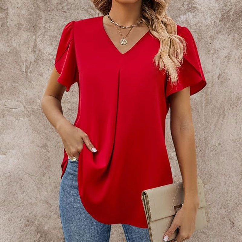 🌸Terälehtihihainen V-aukkoinen yksinkertainen paita