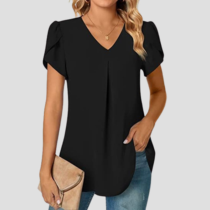 - 1 x Terälehtihihainen V-aukkoinen yksinkertainen paita